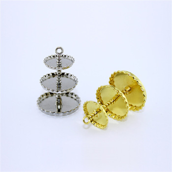 Simulación en miniatura europea de tres capas para aperitivos, estante para pasteles, juego de comida, modelo de cocina, adornos de Metal tallados en oro